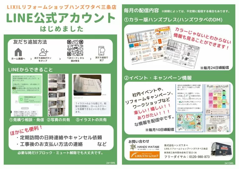 - LIXILリフォームショップハンズワタベ三条店 TEL:0120-980-873